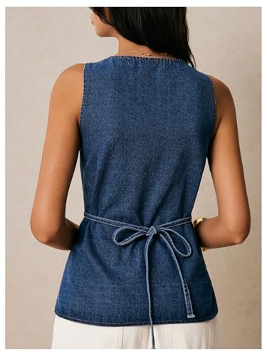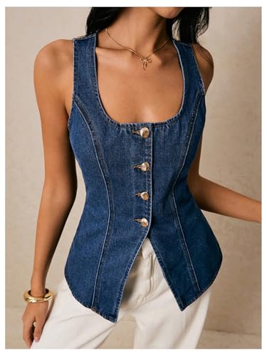 Floerns Women's Y2k Button Down Denim Vest Sleeveless Square Neck Going Out Jean Tank Top